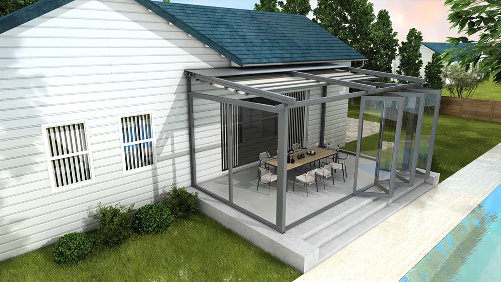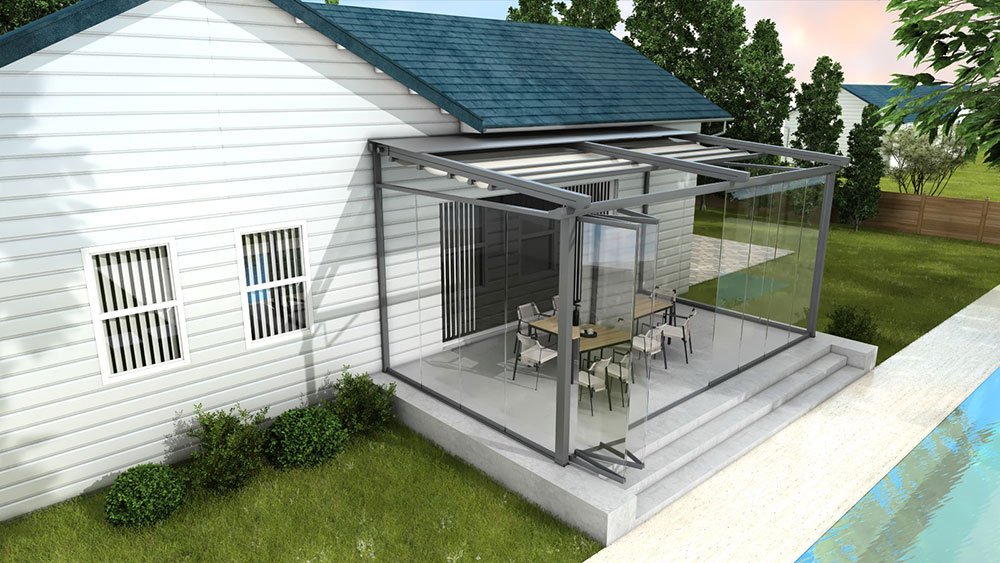 Glass Addition "Latte" motorized vynil roof system is the easiest way of shading. Any time you will have open or closed space according to your requirement whether it's a cafe, restaurant or a house.