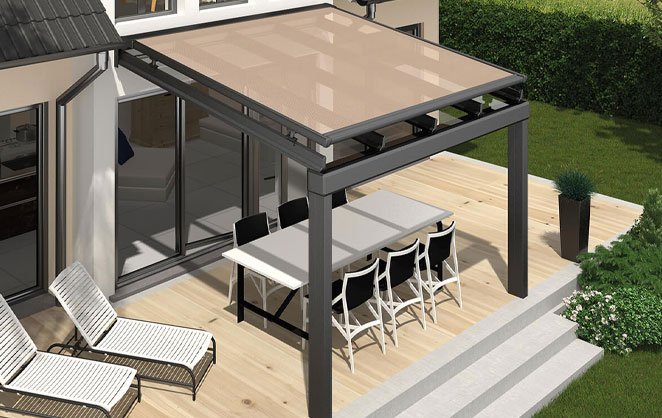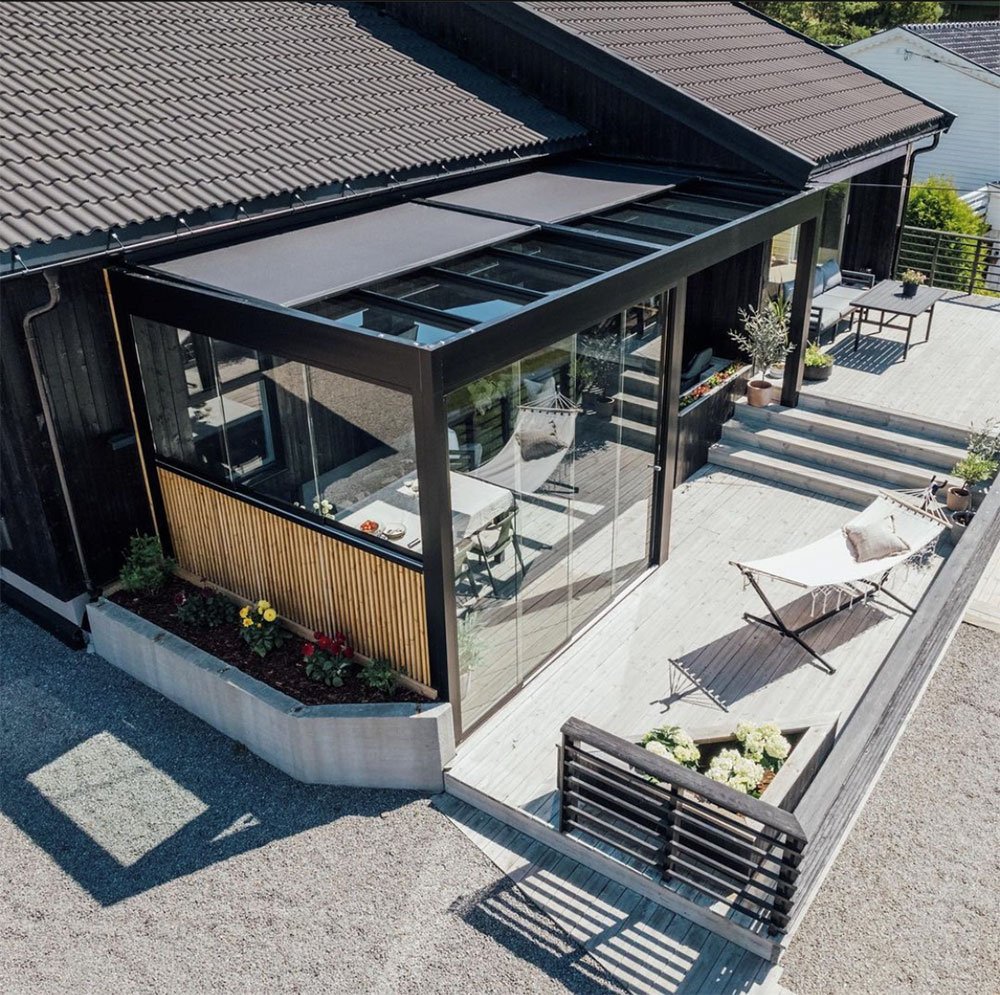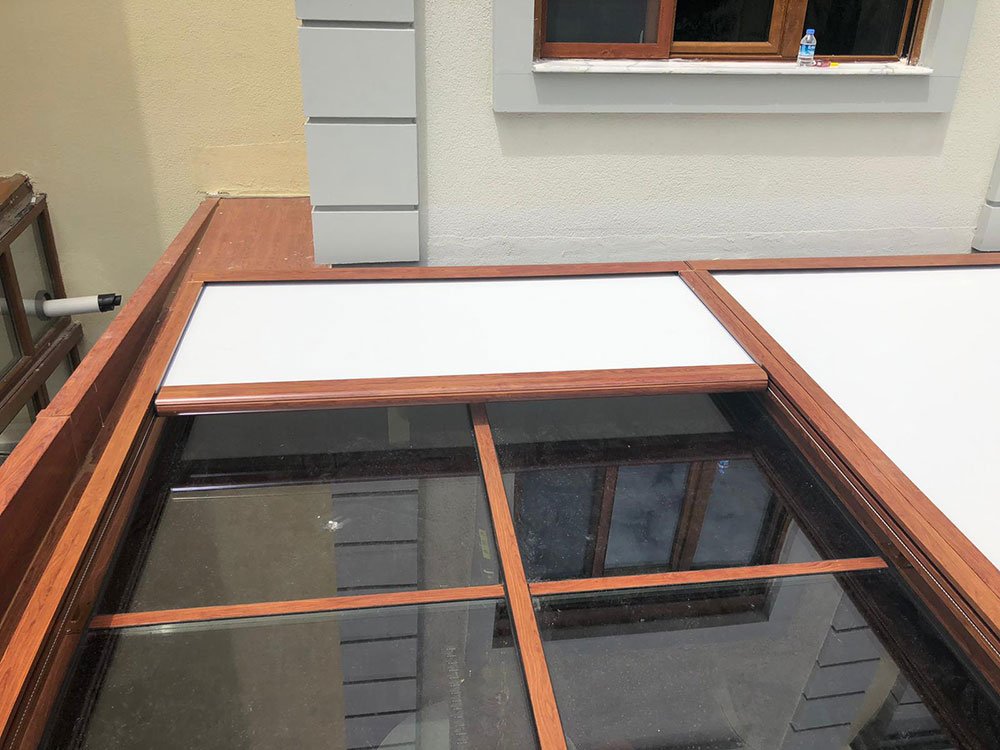 With Glass Additon USA roof type motorized sun screen systems, you can control the sun light easily. When sun set, if you want to see sky through your glass roof, just touch the button of your remote